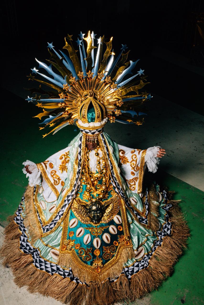 Pela manhã, a escola divulgou o figurino “Conceição Yalodê”, que traz a autora vestida de baiana, em referência direta à célebre imagem de Dona Ivone Lara no desfile de 1983, “Mãe, baiana mãe”. A fantasia apresenta uma leitura afro-católica de Nossa Senhora da Conceição sincretizada com Oxum, orixá ao qual a escritora é ligada, além de ser batizada no dia 8 de dezembro, data da santa. A escritora participou de um ensaio fotográfico vestindo a fantasia e destacou o impacto simbólico da experiência.